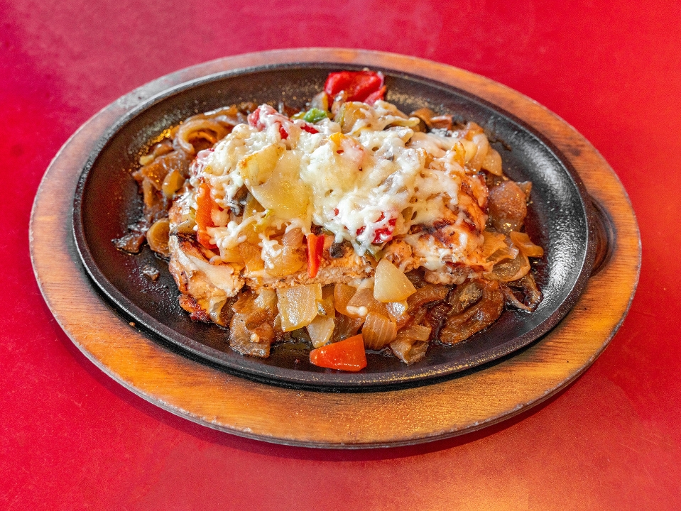 Fajita steak grilled with mushrooms, bell pepper, and onions. Topped with white cheese and served on a sizzling platter